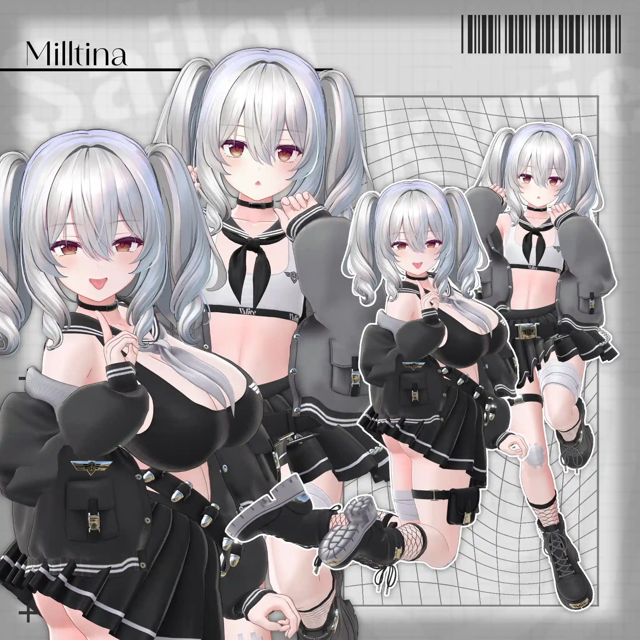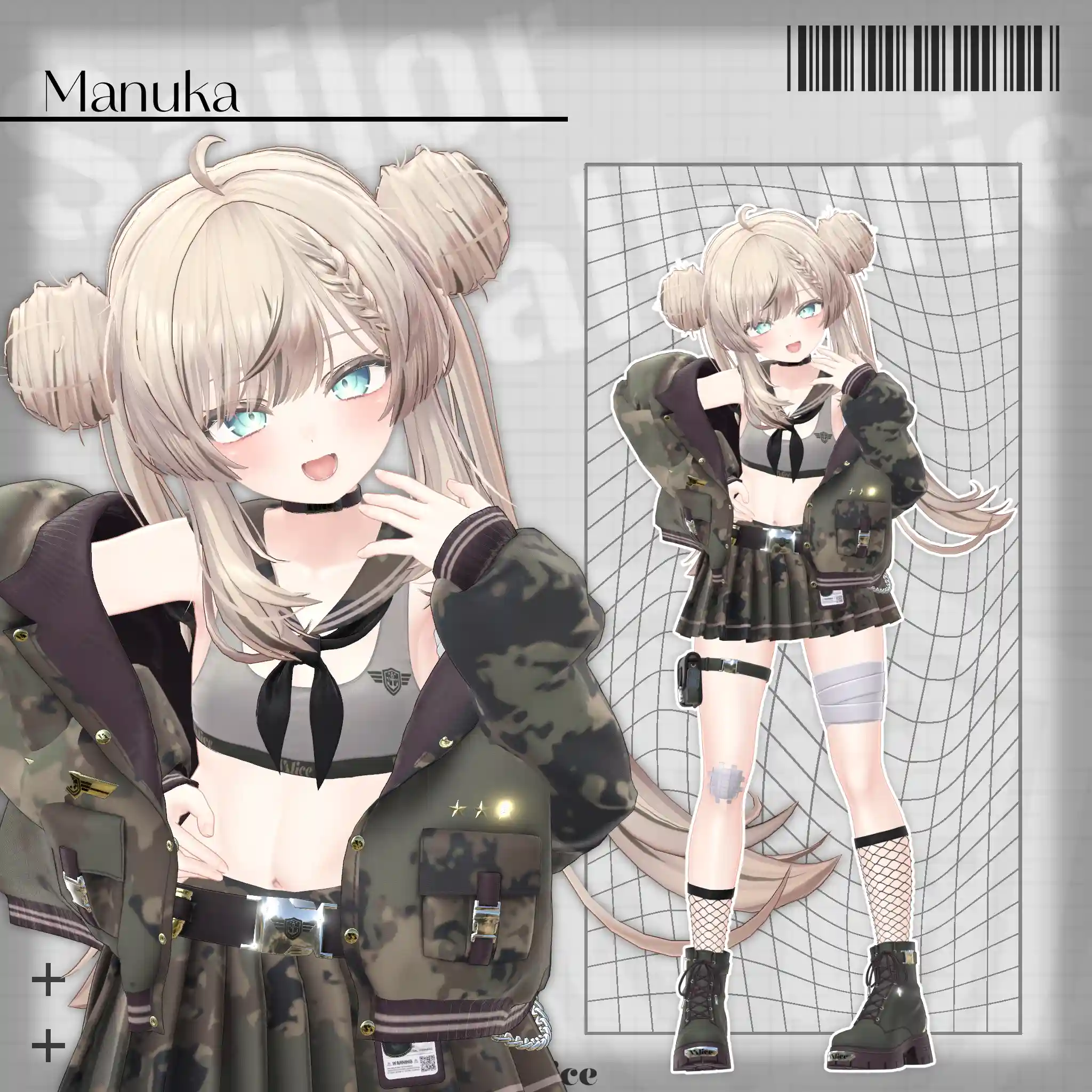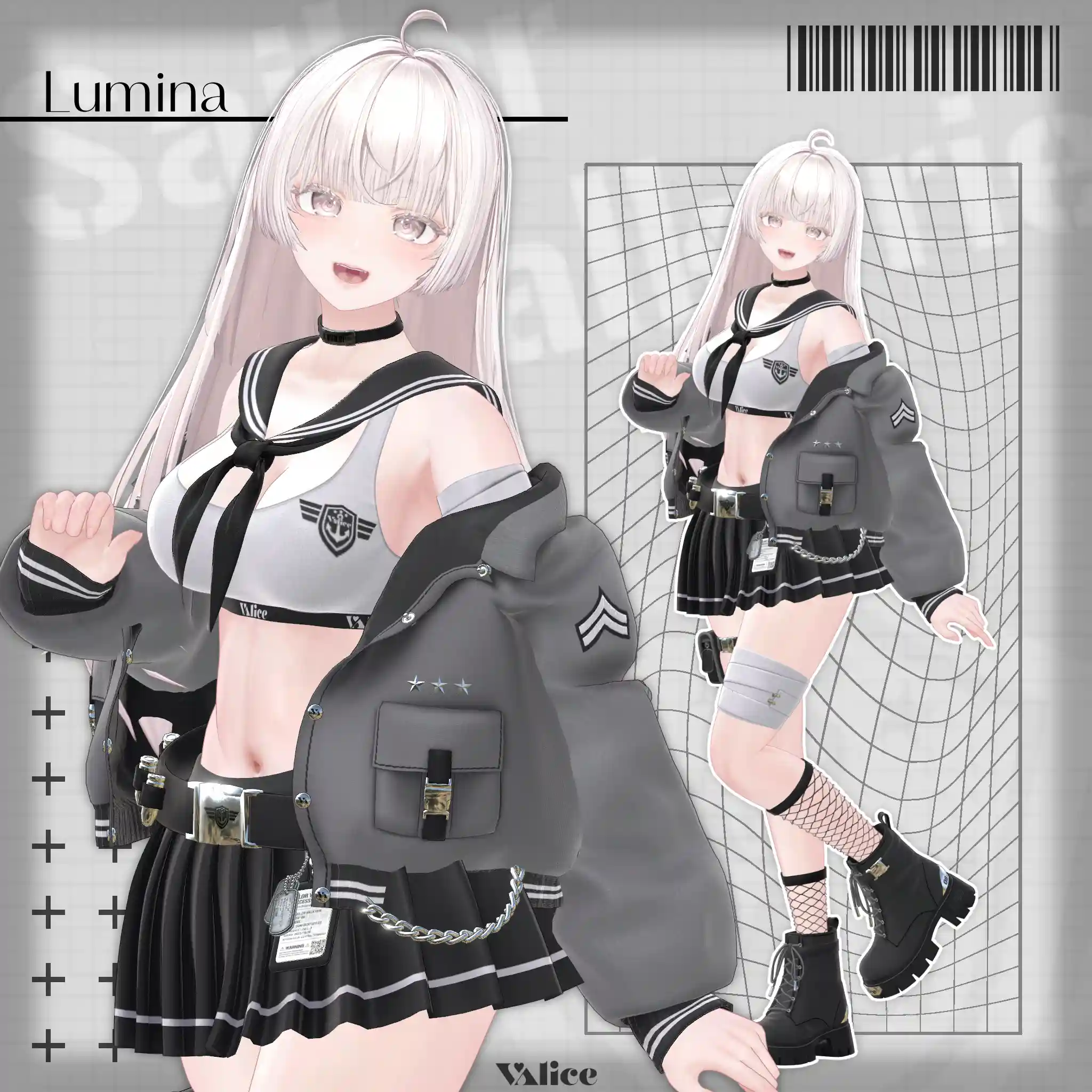 2号店Bonyardにて販売中の「包帯ショート」と合わせてデザインした、VRChat想定のミリタリー×セーラー服モチーフの衣装です。🔗包帯ショートはこちらhttps://stgtokyoavatargatecom.ecbeing.biz/shop/g/gARR-0005/
