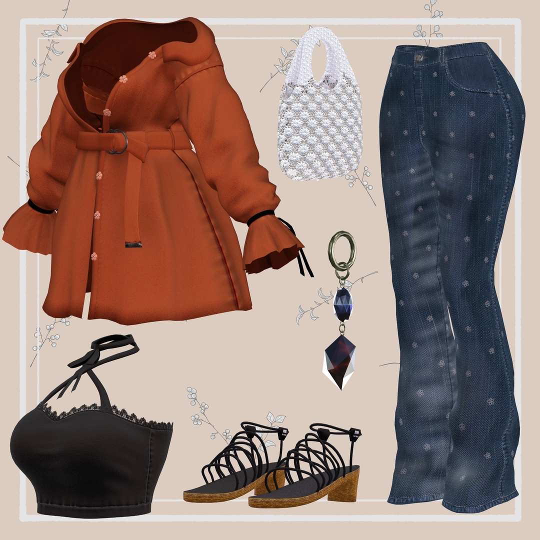 TopInnerwearBootcut denimSandalsEarringsBag (separate, position needs adjustment)