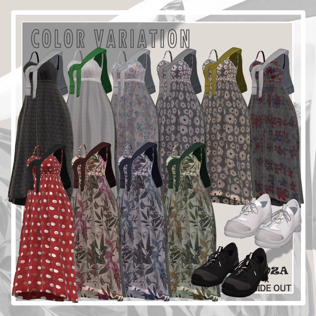 1.キャミソールワンピース ※Lower leg付近のスカートにPB付2.レース ※Lower leg付近のスカートにPB付3.肩掛けカーディガン ※袖と裾にPB付4.スニーカー ※紐にPB付