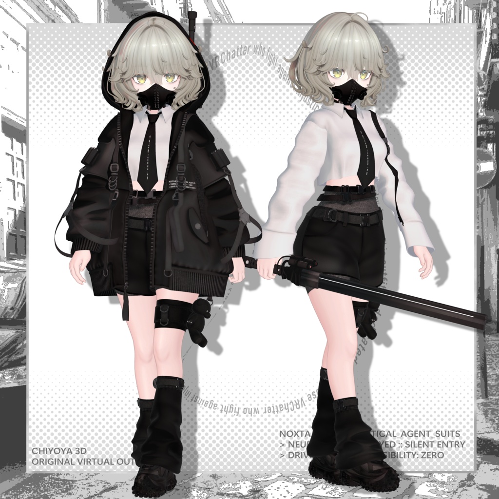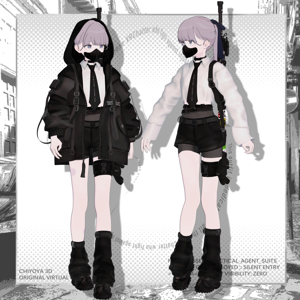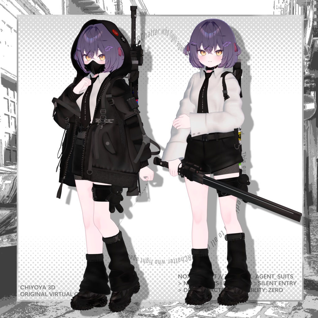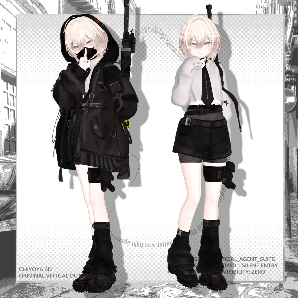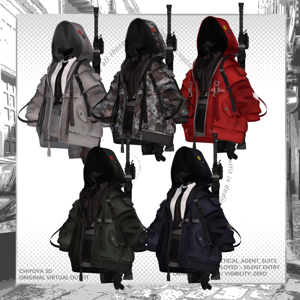 ⚠フード被っているジャケットに「hood」シェイプキーがついていますが、使わないで下さい。(被る方は頭が追従してしまうため、フードなしは別メッシュで用意しています)
