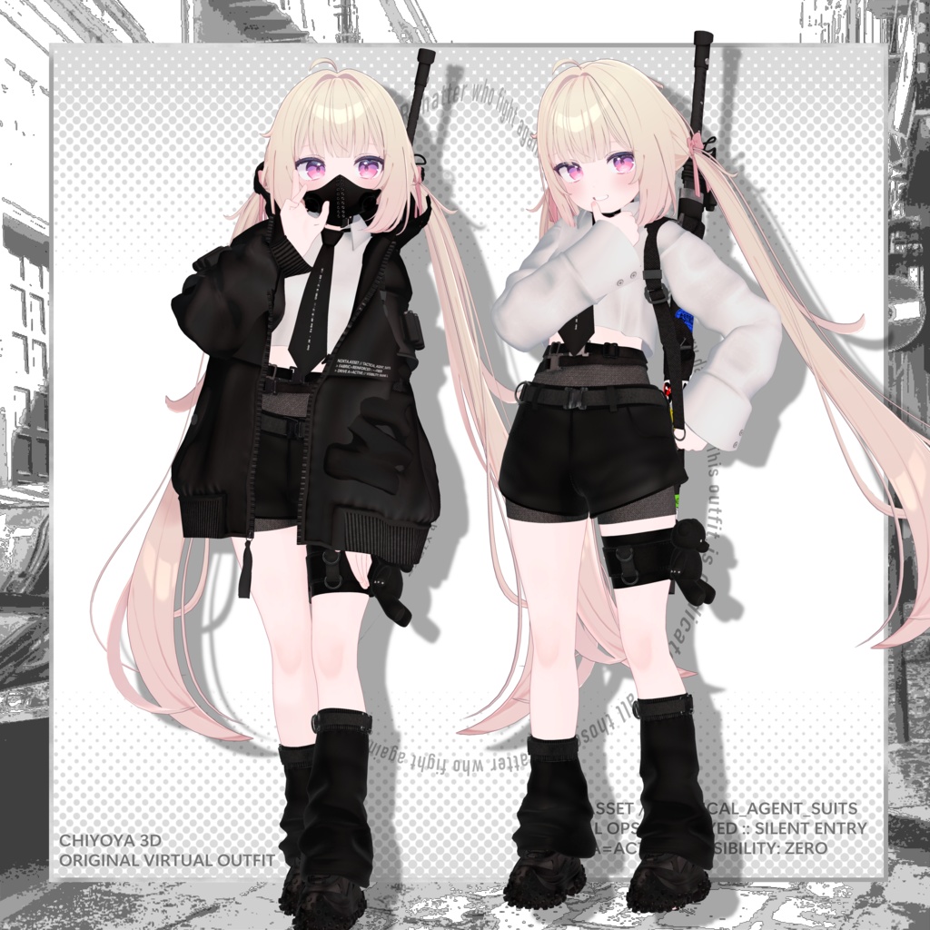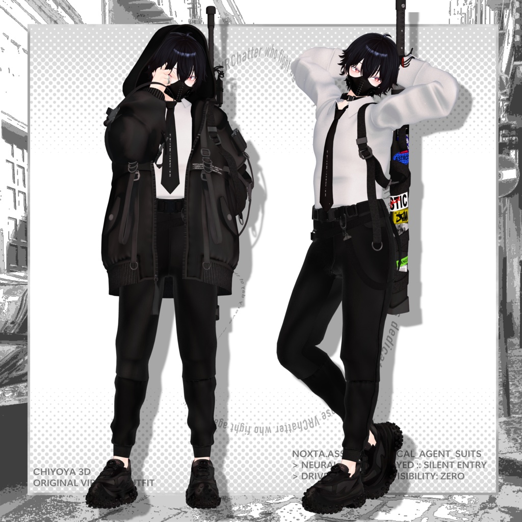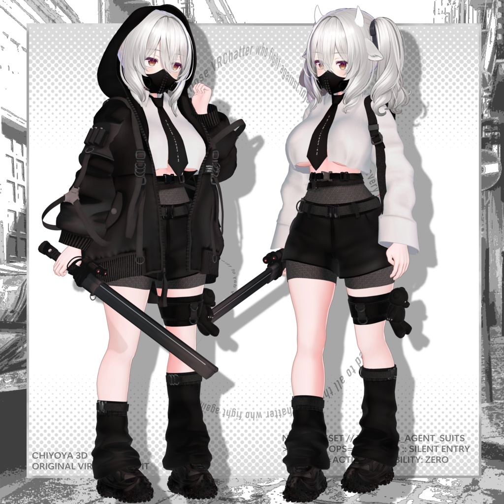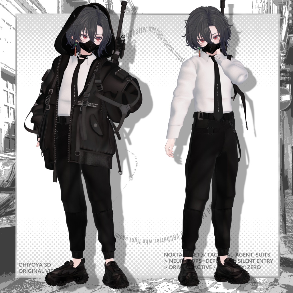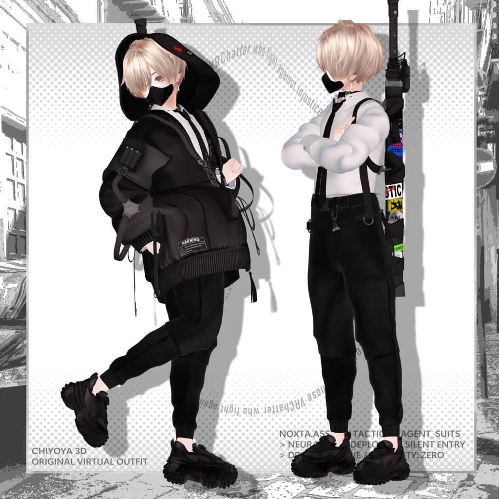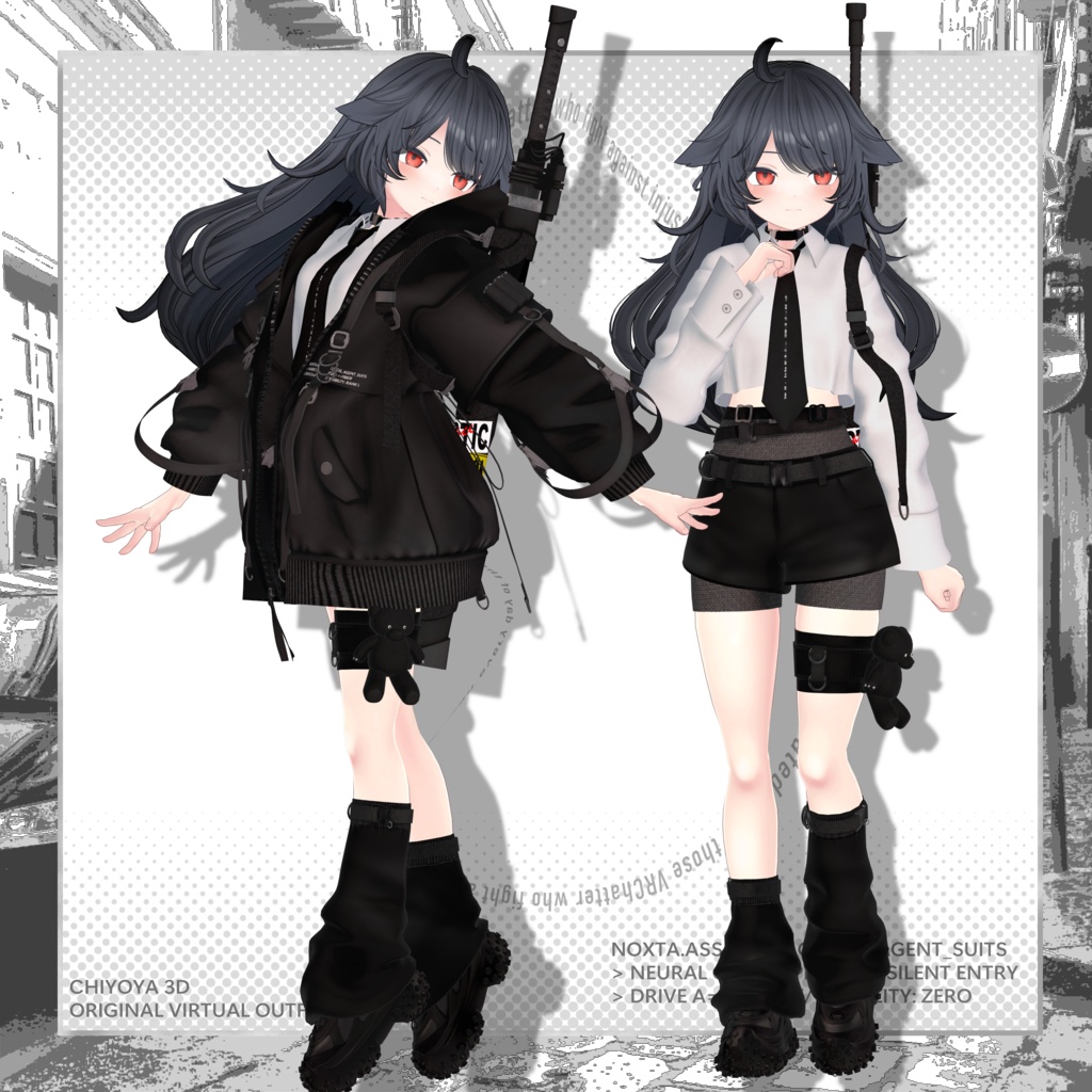 ⚠フード被っているジャケットに「hood」シェイプキーがついていますが、使わないで下さい。(被る方は頭が追従してしまうため、フードなしは別メッシュで用意しています)