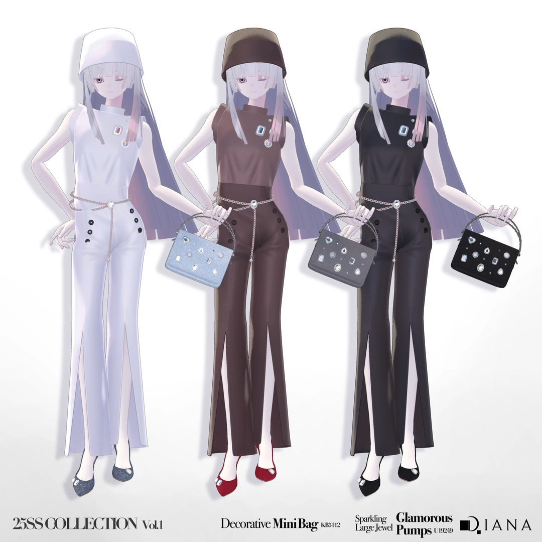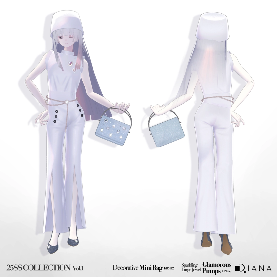本商品には「パンプス」「バッグ」「パンツ」「トップス」「ハット」の3Dモデルが含まれます。