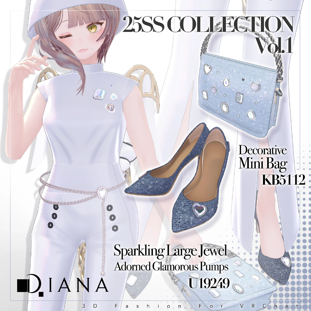 メタバースファッションブランド「Pochi by KT」とのコラボアイテム。ハイヒールパンプスに合わせてエレガントで美しいシルエットに仕上げました。キラキラ大粒ビジューで胸元を華やかに仕上げています。