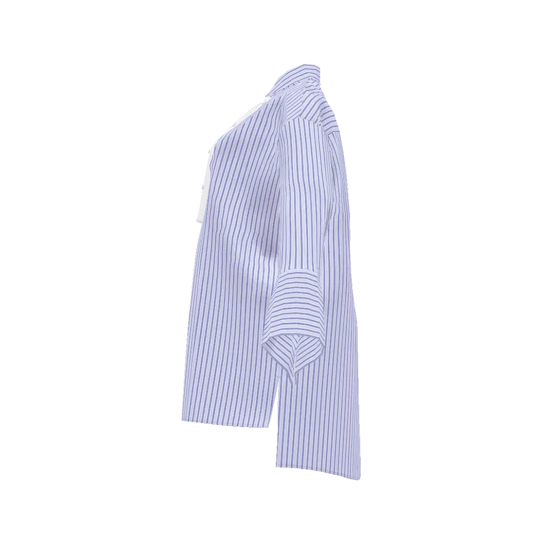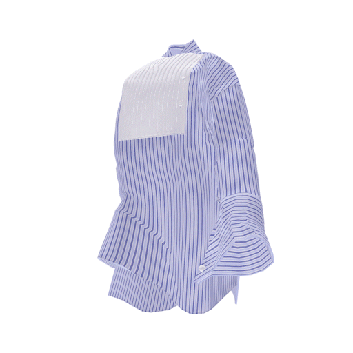 ラウンドカラーのロングスリーブシャツ。ダブルカフスと胸のタックプリーツで大人な雰囲気を演出。