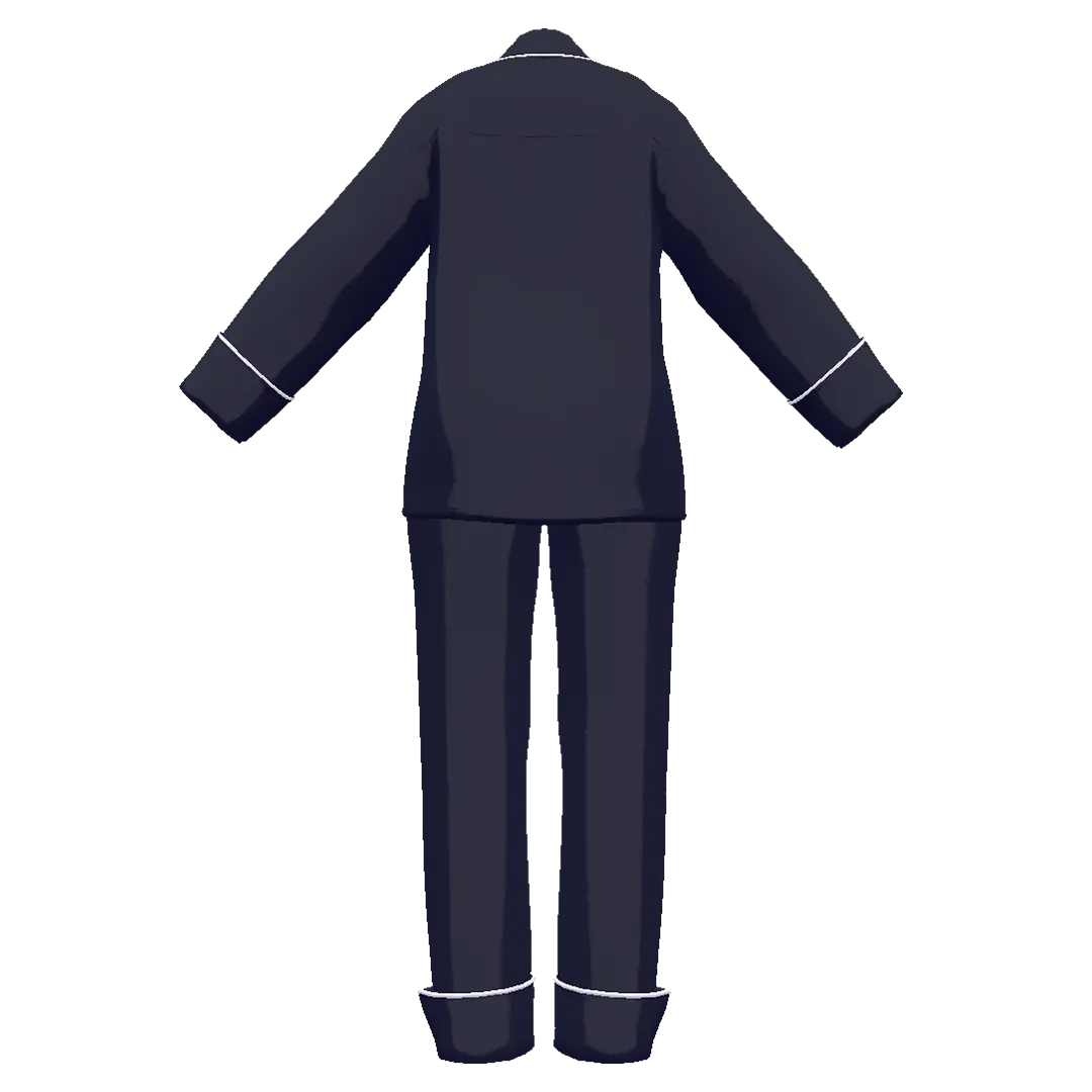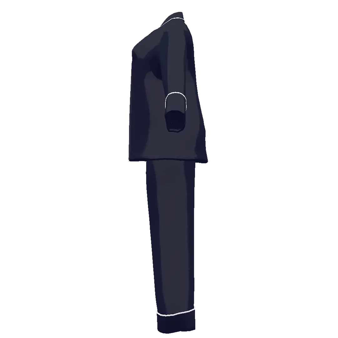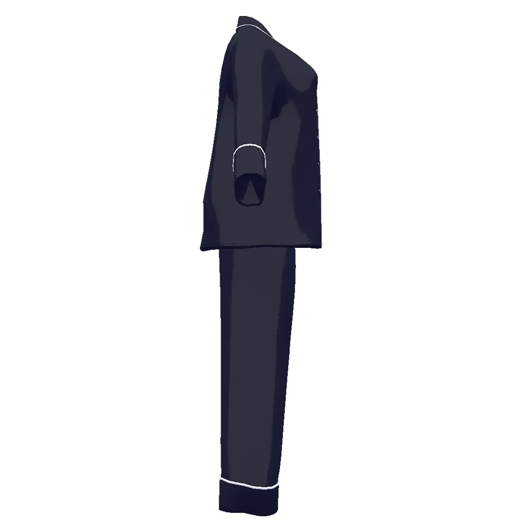 パイピング仕立てで光沢感のあるシルク素材を使用したパジャマ。袖・裾は折り返しの仕様。