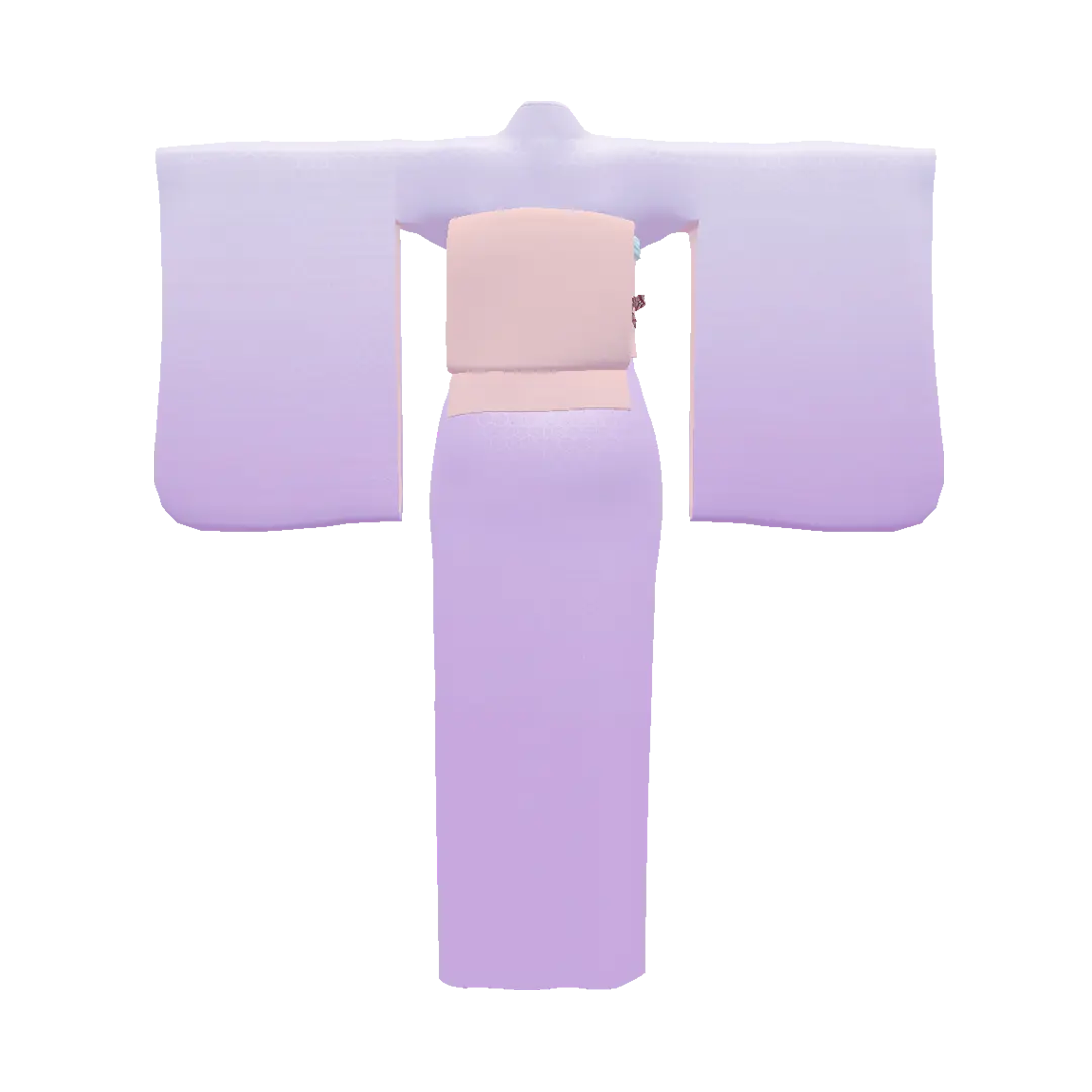 地紋に亀甲模様が入った着物。パープルグラデーションをベースに、シックで大人っぽい印象に。