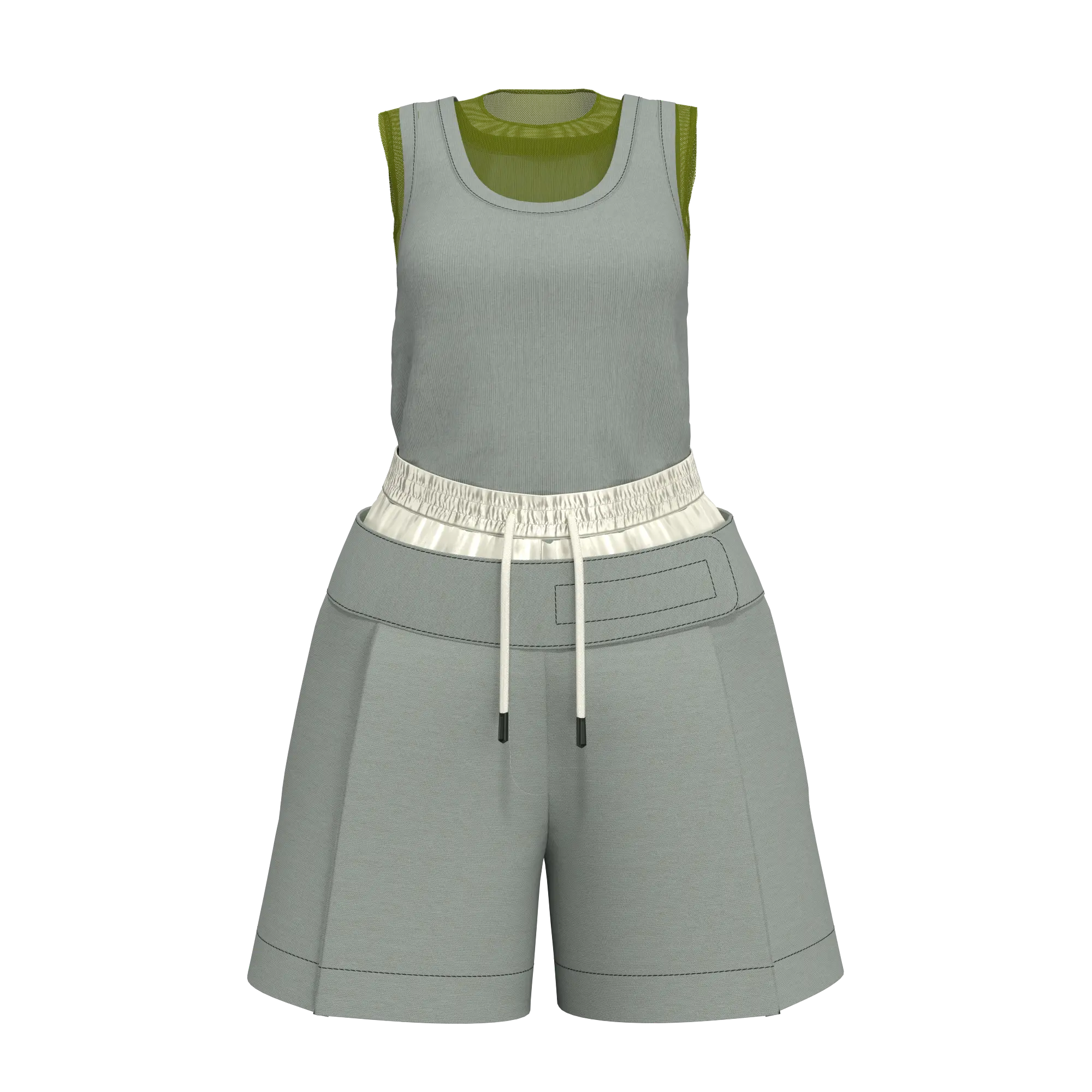 - > TAG BELTED SHORT PANTS [with Tank-top]