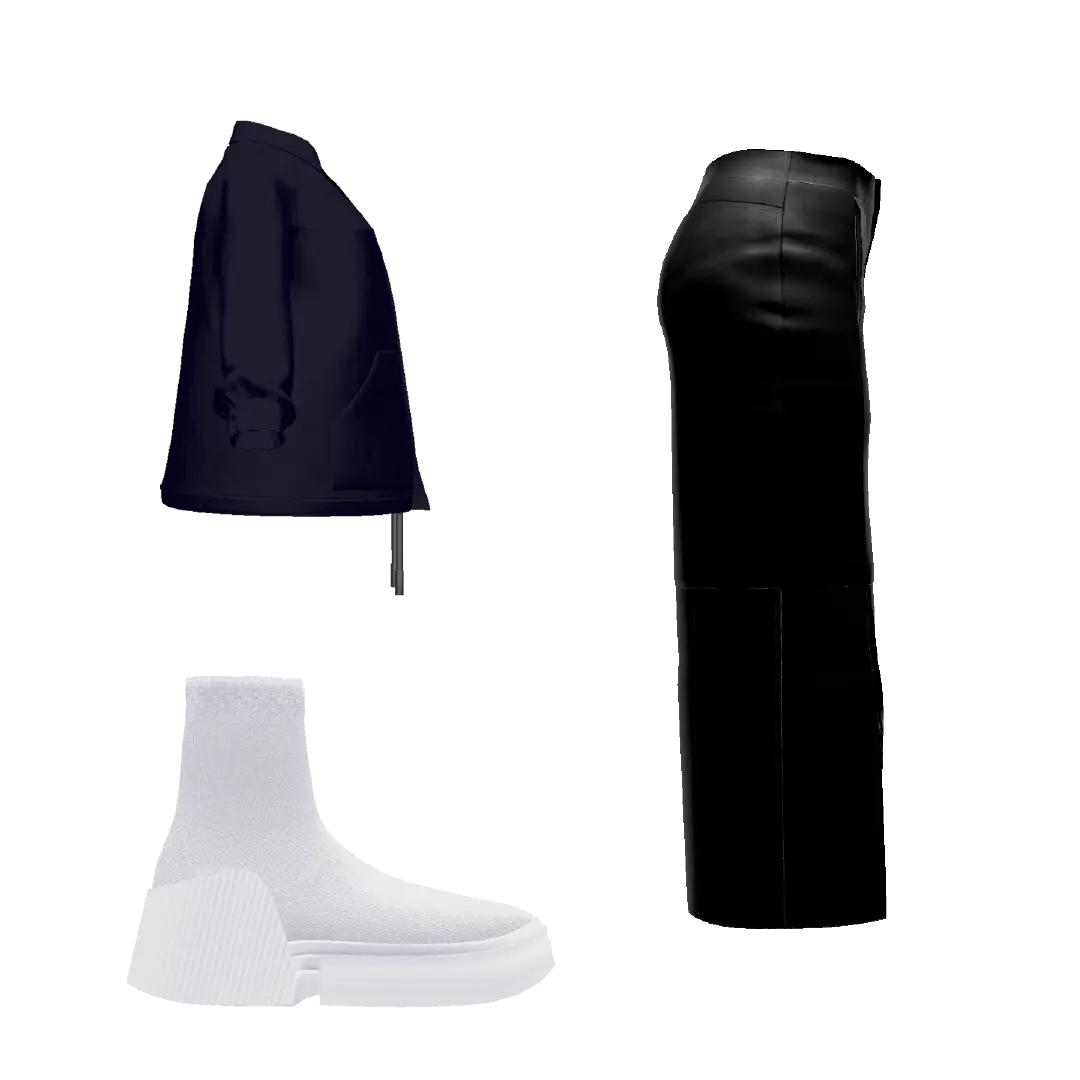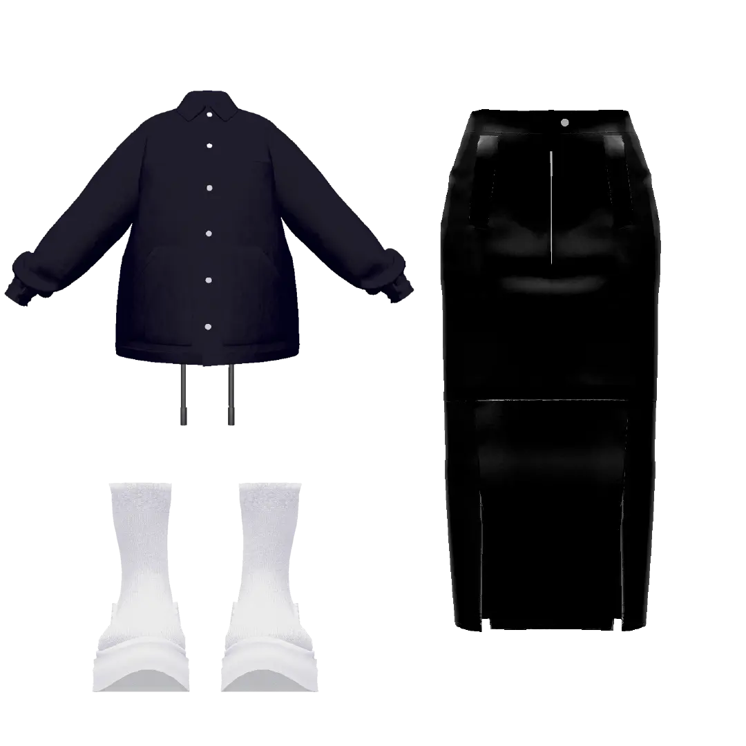 【セット内容】 ・TAG COACH JACKET(ブラック) | TAG-0005 ¥2,200 ・TAG SLIT LONG LEATHER SKIRT(ブラック)| TAG-0013 ¥2,200 ・TAG SOCKS BOOTS(ホワイト) | TAG-0010 ¥1,100