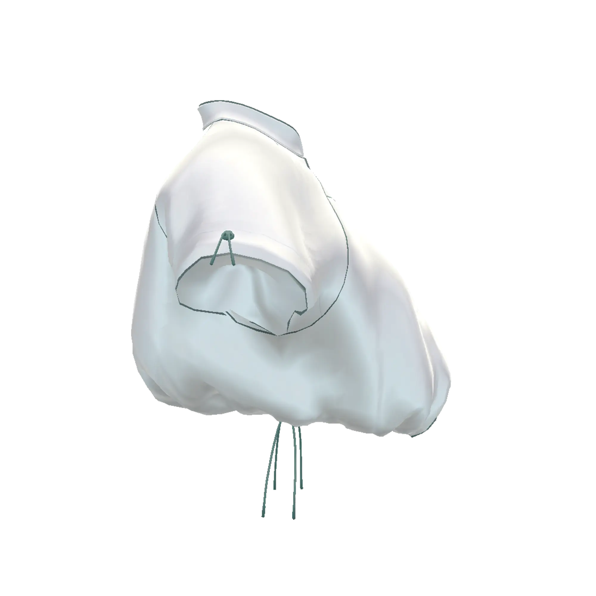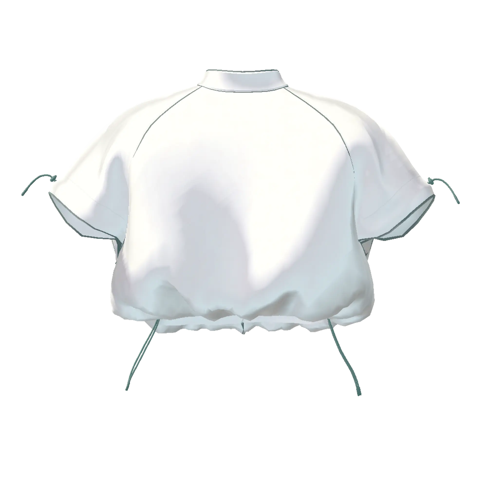 スポーティーな素材を使用し、裾を絞ることでバルーンシルエットを作り出すショート丈のノースリーブトップス。